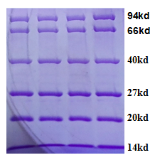 中分子量非预染蛋白Marker工艺升级,主要是增加了稳定重组表达的蛋白比例,条带更加锐利,清晰,此外改进了储存液的配方,添加了稳定剂,大大增加了稳定性,短期使用可以在4度保存几个月,负20度保存2年以上。